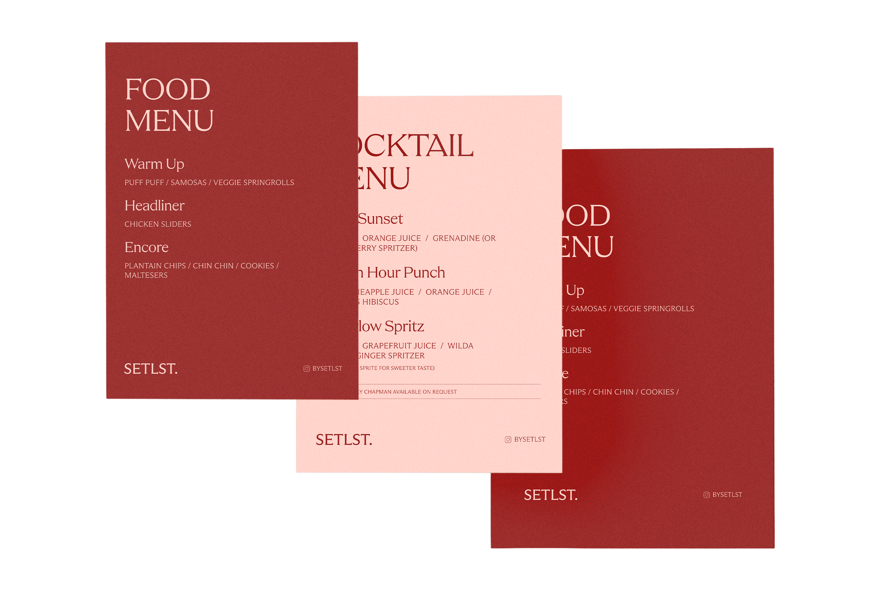 Setlst began as a passion project exploring the intersection of music and atmosphere — how visual cues, sound, and storytelling can transform a small space into an immersive world. The idea: curate experiences people can actually feel. From volume one to two, the concept evolved into a distinct visual language — minimal but rich, intimate but alive — merging sound, culture, and community energy