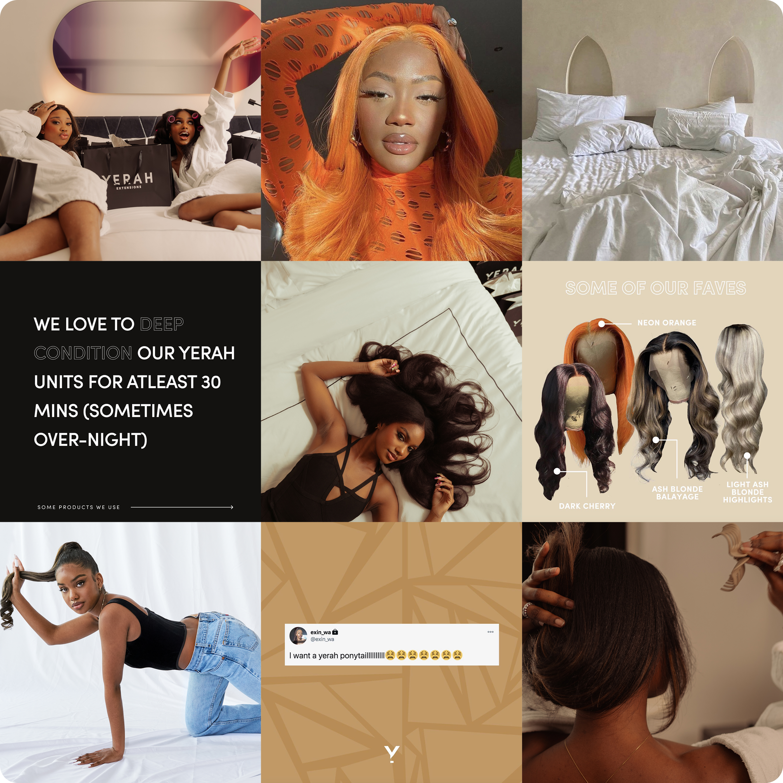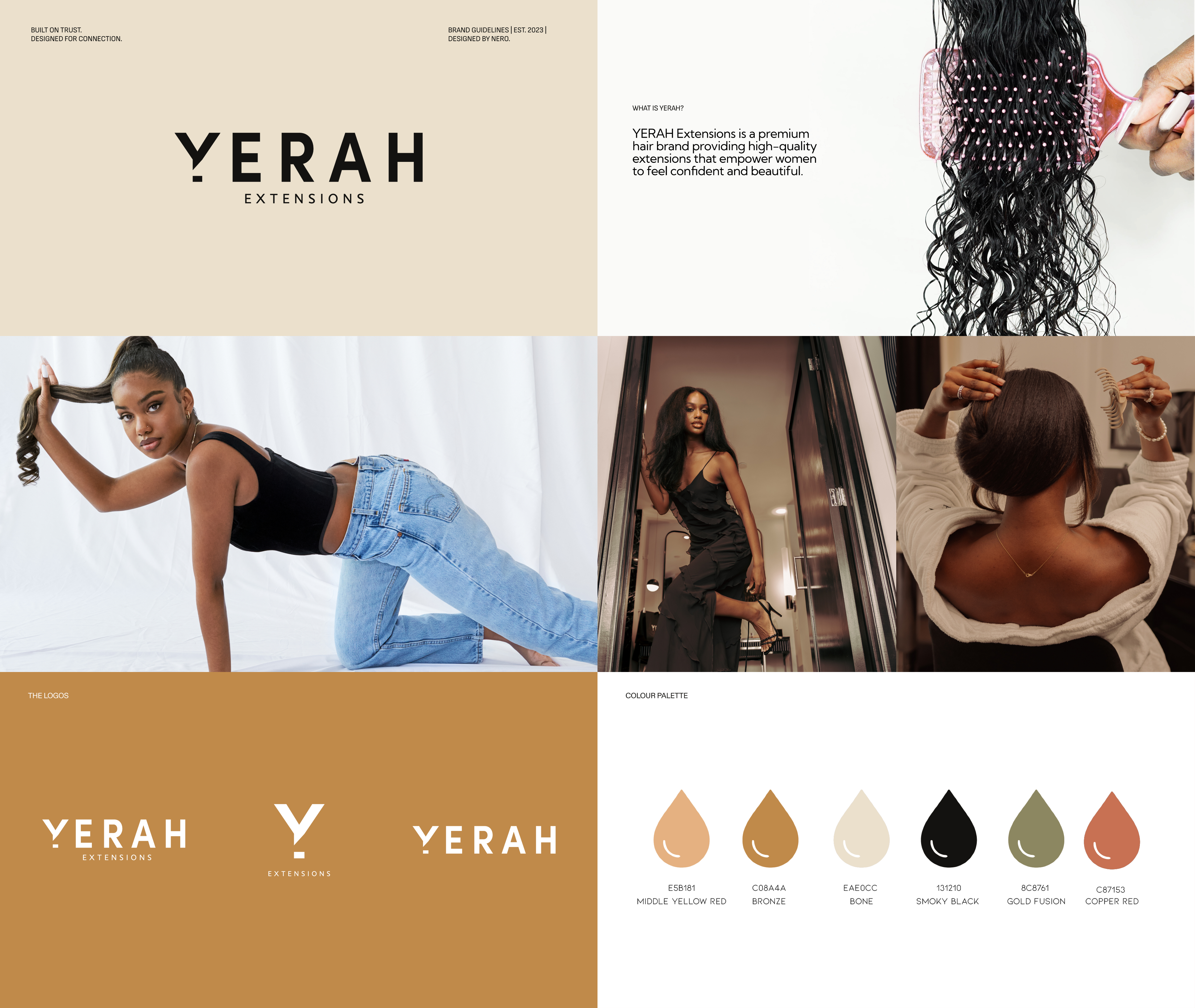 YERAH is a premium virgin hair extension brand rooted in expertise, quality, and care. Founded by a hairstylist with a two-year sourcing journey to find the best hair, YERAH needed a brand identity that balanced luxury with warmth — premium but never pretentious, elevated but deeply personal.